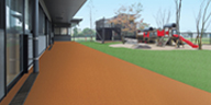 A material that is optimal for open-air corridors and terraces for children’s facilities, offering slip-resistance, easy maintenance and heat insulating/infrared reflecting properties.