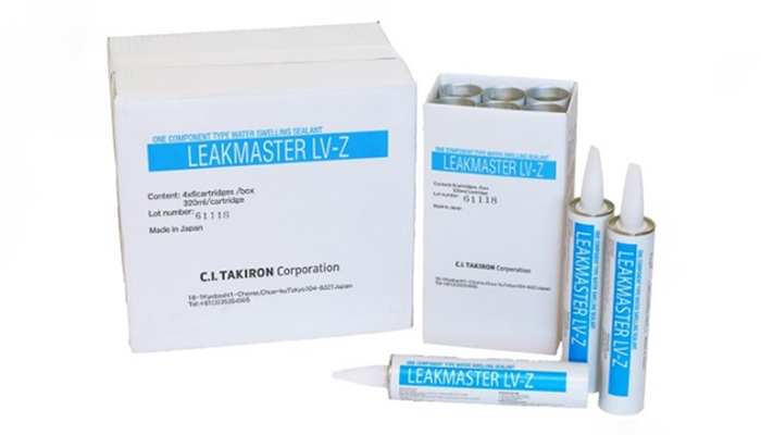 Chloroprene rubber based hydrophilic water sealing material which has long durability and good chemical resistance, which is called Hydrotite.
